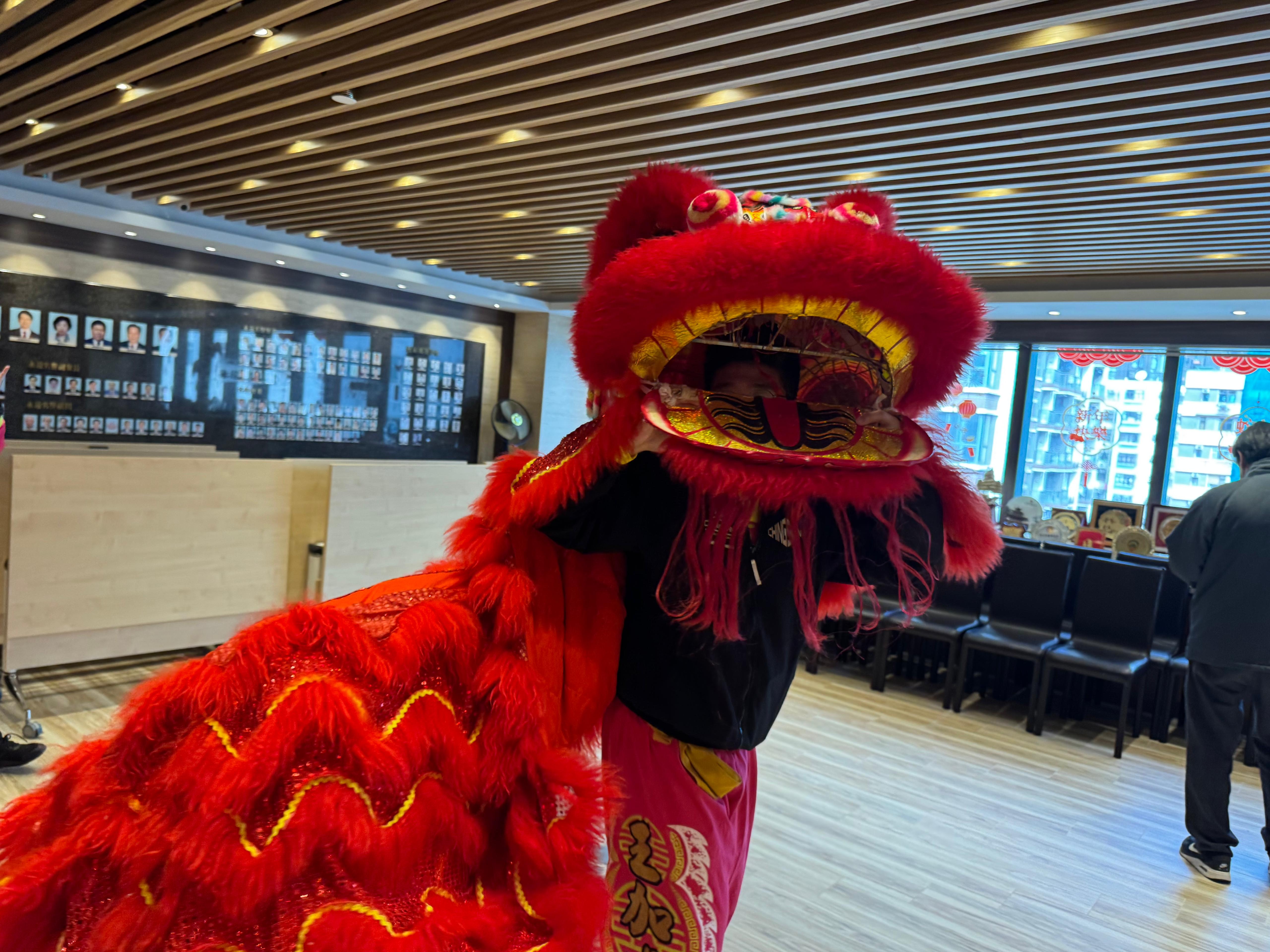 當天在場迎接醒獅的有陳榮欣副會長兼秘書長,曾祥裕副會長,王文生總務主任及陳偉豪審核主任等。祝願大家新的一年龍馬精神!