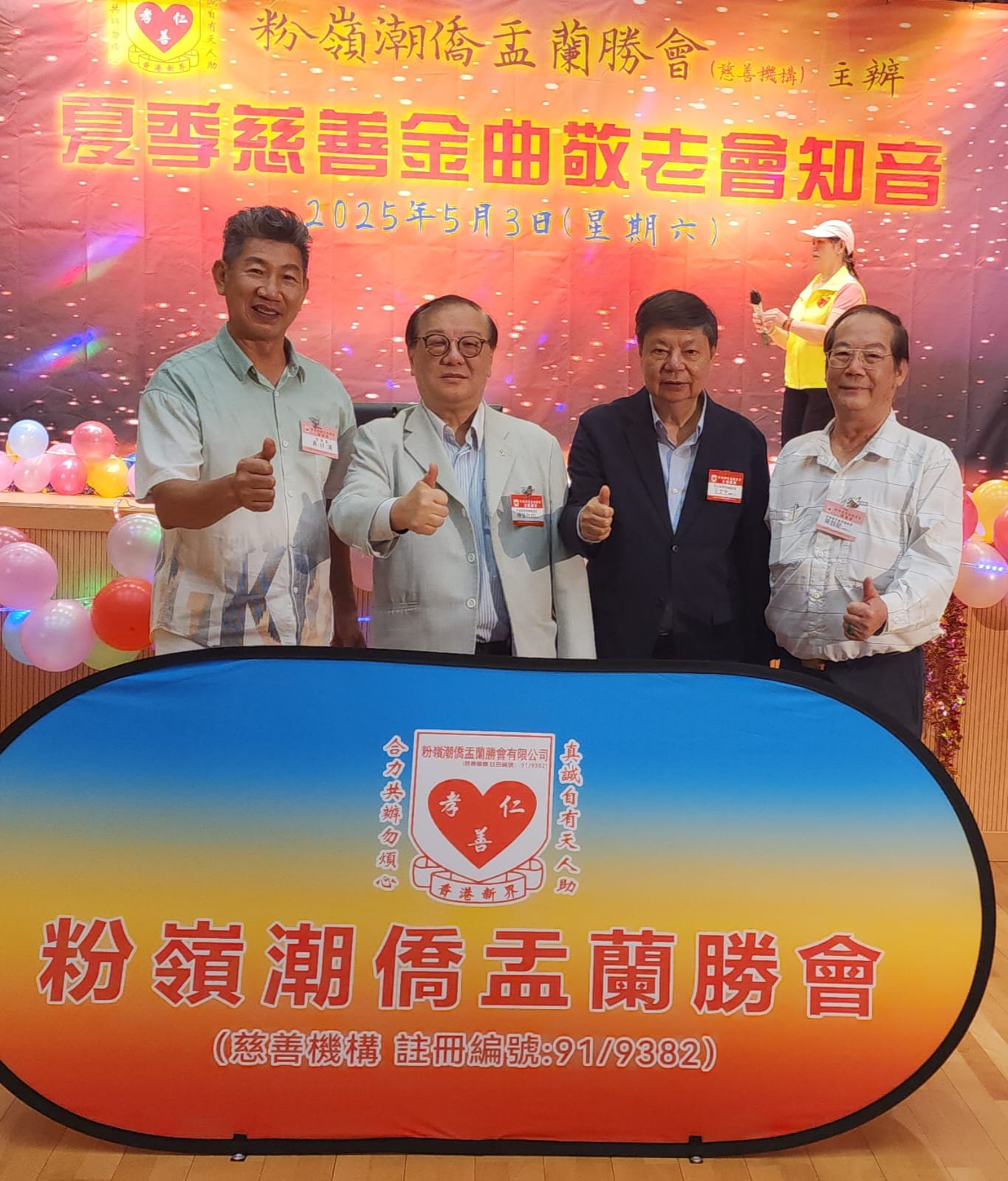 035 月 2025年5月3日 參加粉嶺潮僑盂蘭勝會舉辦「夏季慈善金曲敬老會知音」活動 管理員2025-05-09T01:12:13+00:00 2025年5月3日(星期六)下午,粉嶺潮僑盂蘭勝會在粉嶺聯和墟社區會堂舉辦「夏季慈善金曲敬老會知音」活動,本會陳榮欣副會長兼秘書長及王文生總務主任代表出席。 活動共2百多人參加,籌得的善款其中部份捐贈予慈善團體 -「香港導盲犬服務中心」。 Share this post Facebook Twitter LinkedIn Google + Email