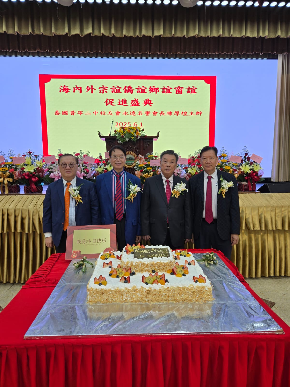 由旅泰普寧二中校友會永遠名譽理事長,旅暹普寧同鄉會常務理事陳厚煌先生主辦「促進海內外宗誼、僑誼、鄉誼、窗誼聯歡盛典晚會」於2025年6月1日晚,在旅暹普寧同鄉會修益大禮堂舉行,活動迎來旅暹普寧同鄉會李楚雄理事長暨諸首長;泰國陳氏宗親總會陳楚新永遠榮譽會長,陳通廣代理事長暨諸首長;香港普寧同鄉會張仲哲會長暨諸首長許義良、陳少洪、陳榮欣等;廣東普寧商會輪值會長伍偉民一行;深圳普寧商會輪值會長賴萬東一行等3百餘人出席聯誼。