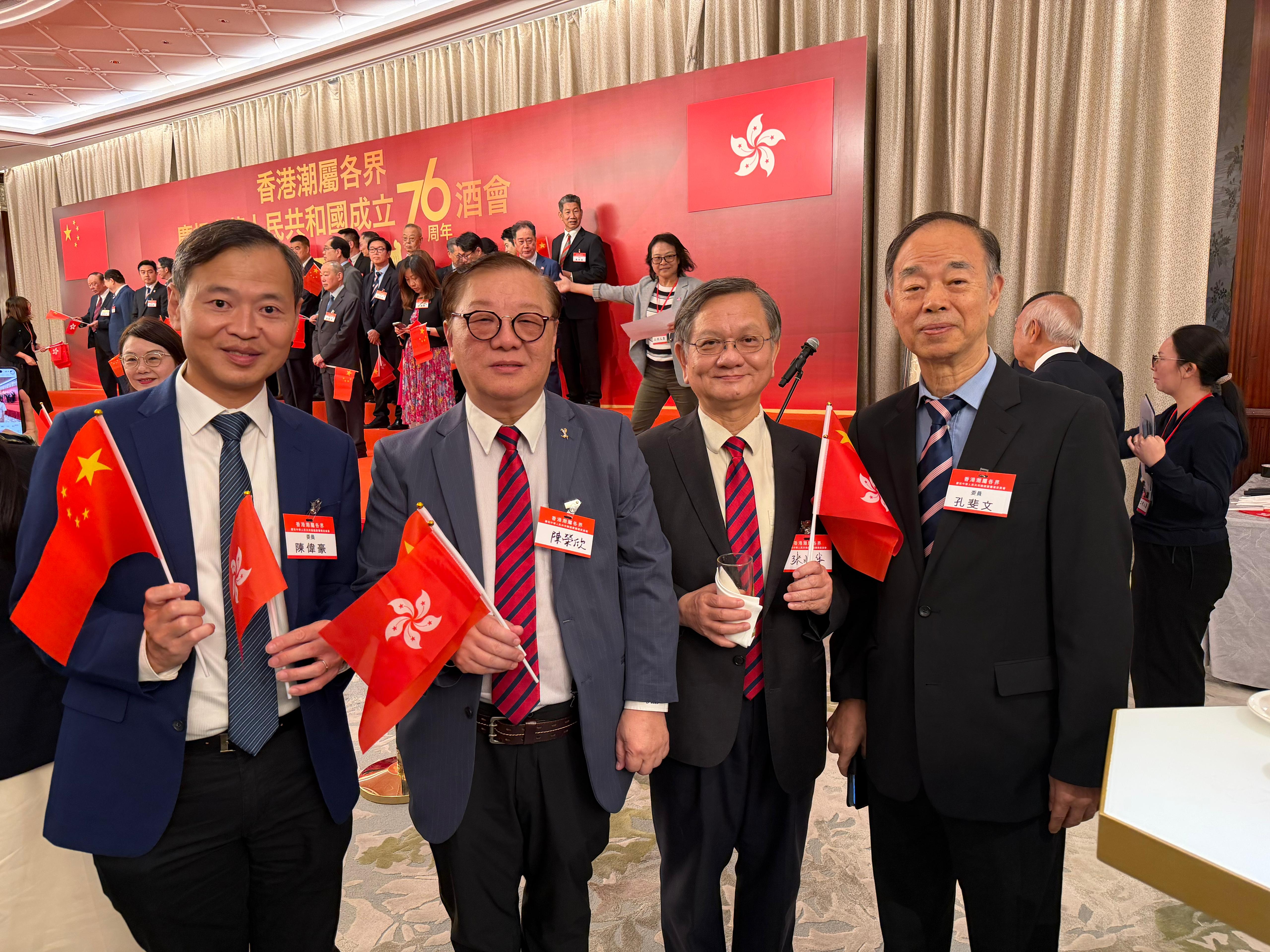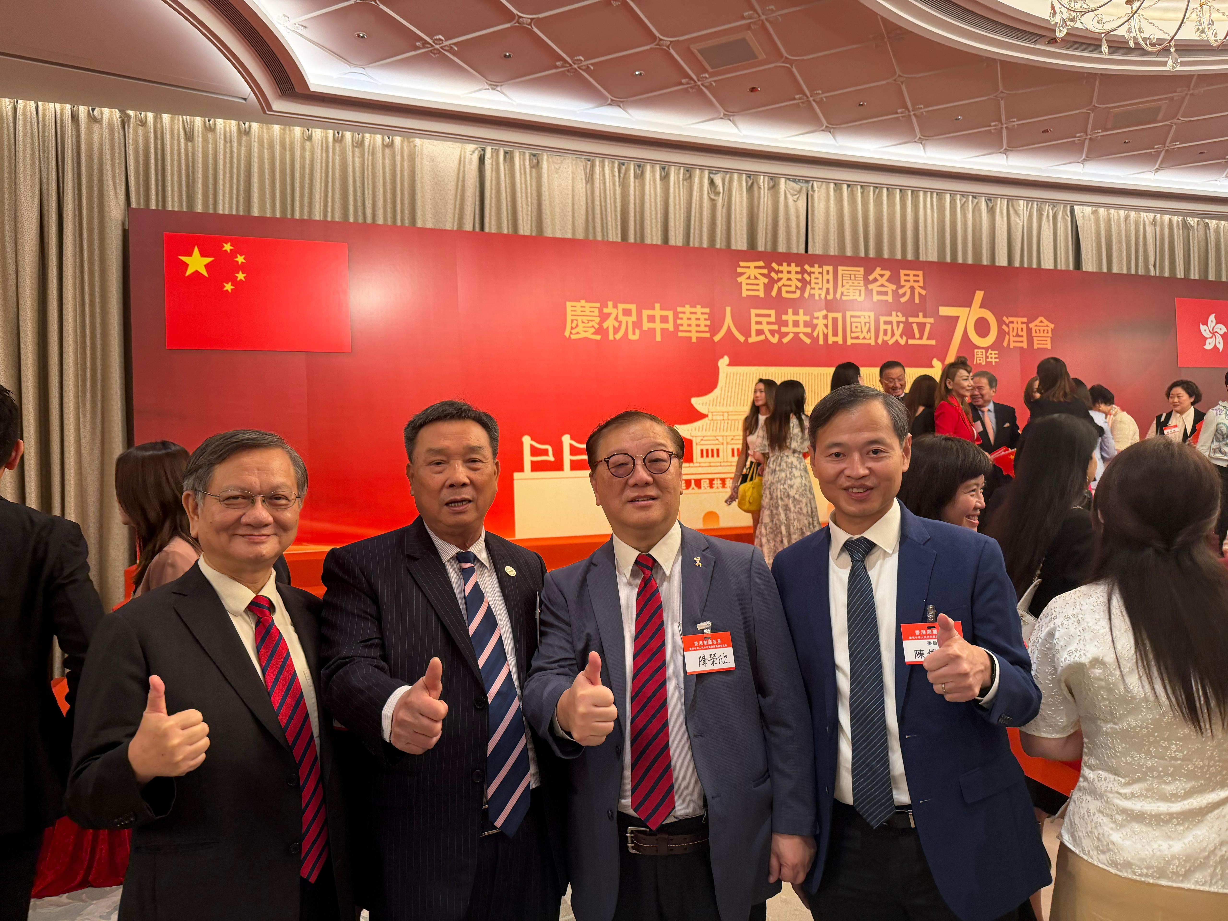 269 月 2025年9月25日 本會參加潮屬各界慶祝76周年國慶酒會 管理員2025-10-16T18:22:55+00:00 2025年9月25日,香港潮屬各界熱烈慶祝中華人民共和國成立76周年,於港島香格里拉酒店香島殿舉行慶祝酒會。 慶祝活動在莊嚴奏唱國歌開始,由籌備委員會主席陳振彬以及香港特別行政區行政長官李家超分別致詞。 本會多位鄉親出席參加,包括陳少洪會長,張仲哲監事長,孔斐文副會長,陳啟祥副會長, 陳煒龍副會長,洪玉芝副會長,陳榮欣、曾祥裕榮譽副會長,張順華秘書長及各主任、會董。 Share this post Facebook Twitter LinkedIn Google + Email